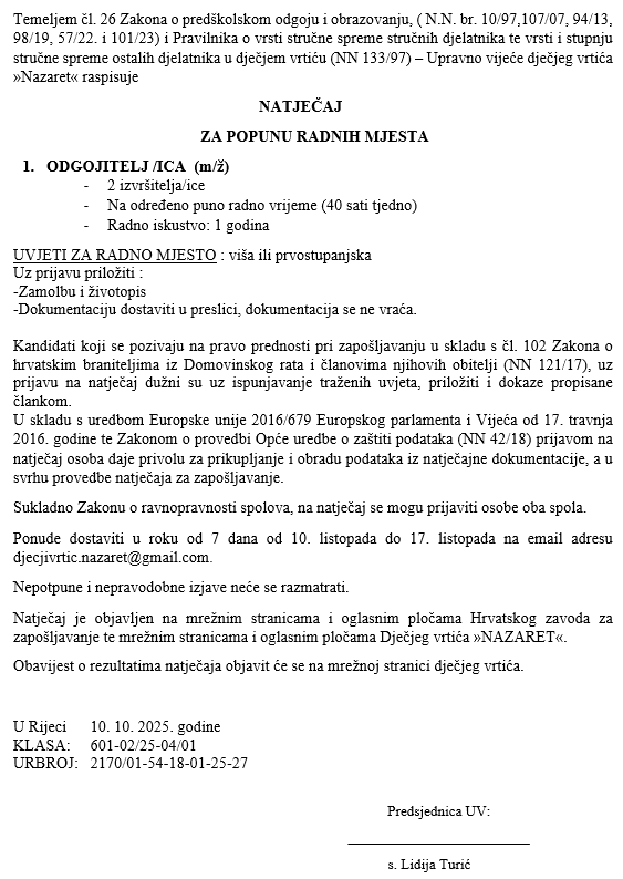 Natječaj   petak, 10. listopad 2025, 12:00:00