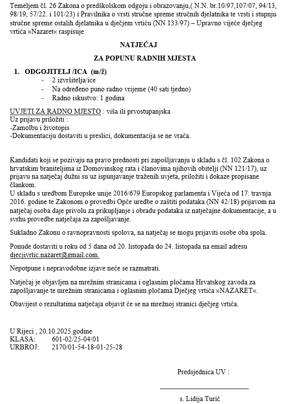 Natječaj   ponedjeljak, 20. listopad 2025, 12:00:00